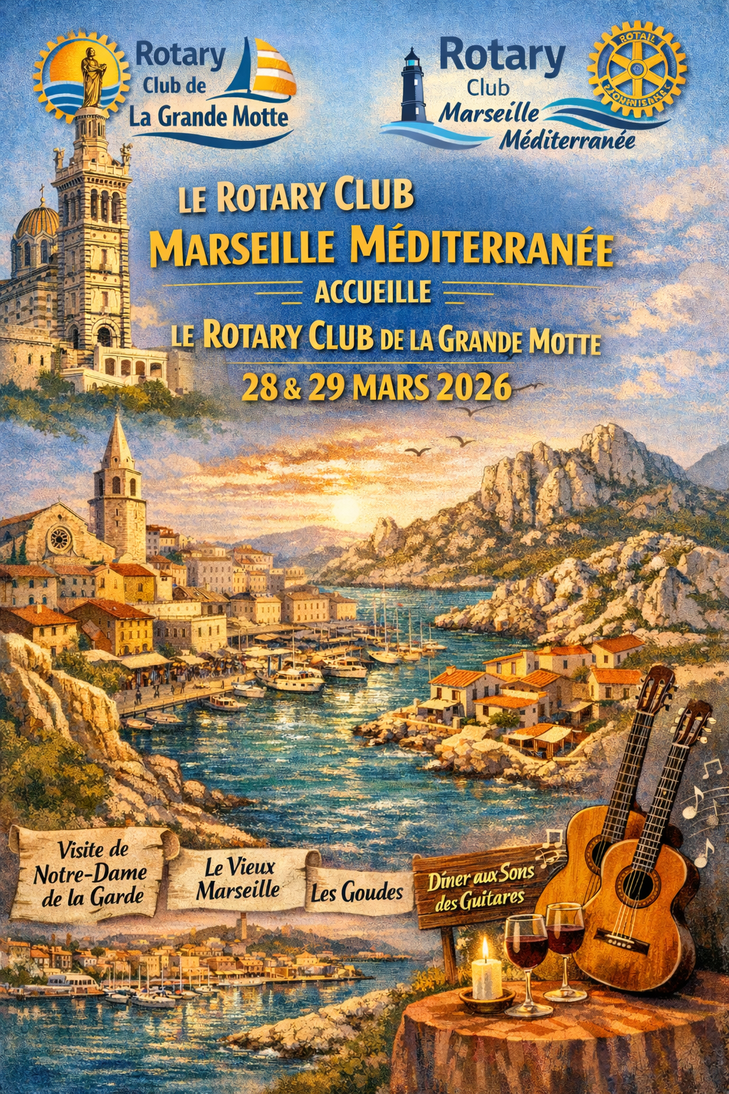Nos amis du Rotary Club de La Grande-Motte nous rendront visite à Marseille, le week-end des28 et 29 mars 2026Le programme :Visite de Notre Dame de La Garde.